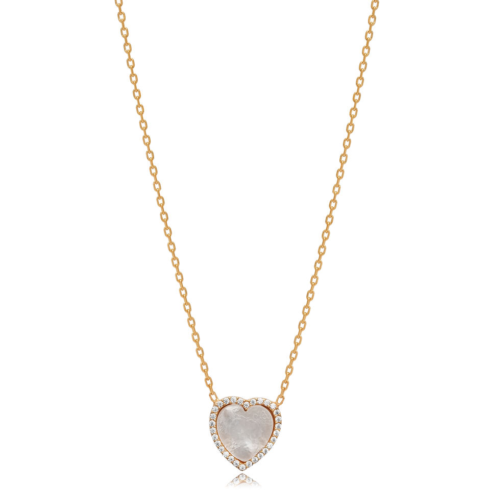 Heart Design Mother of Pearl Stone Love Collection Charm Necklace Turkish Handcrafted Wholesale 925 Sterling Silver Jewelry