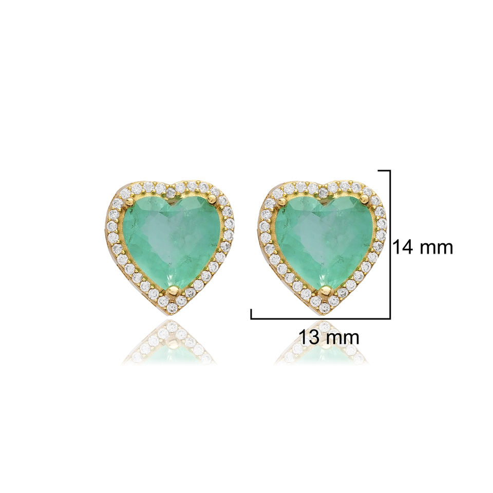 Heart Design Paraiba CZ Stone Handmade Silver Stud Earrings Handcrafted Turkish 925 Sterling Silver Jewelry