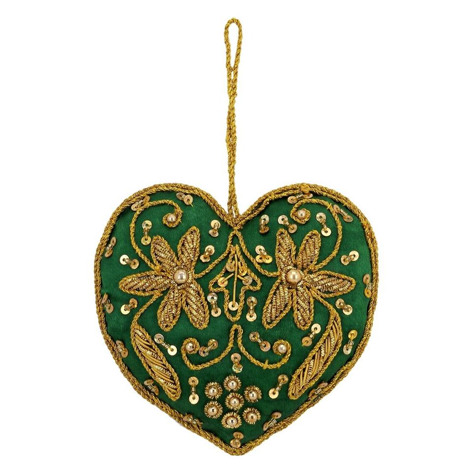 Heart Design Zari Hanging Craft | Beaded Fabric & Gold Thread Embroidery for Home Decoration, Gifting & Branding