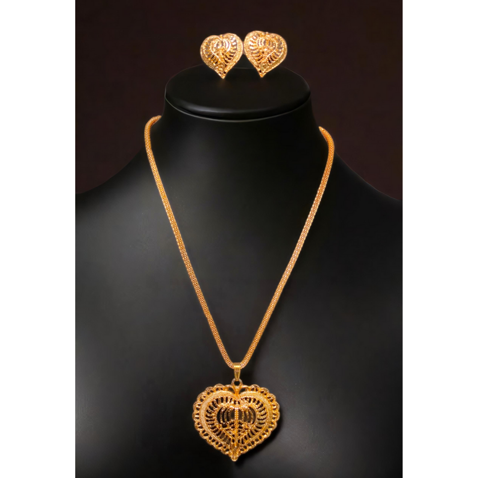 Heart Designed Necklace Earrings Set with 22Ct Gold Plated Unique Necklace Earrings Set For Women Wear Jewelry