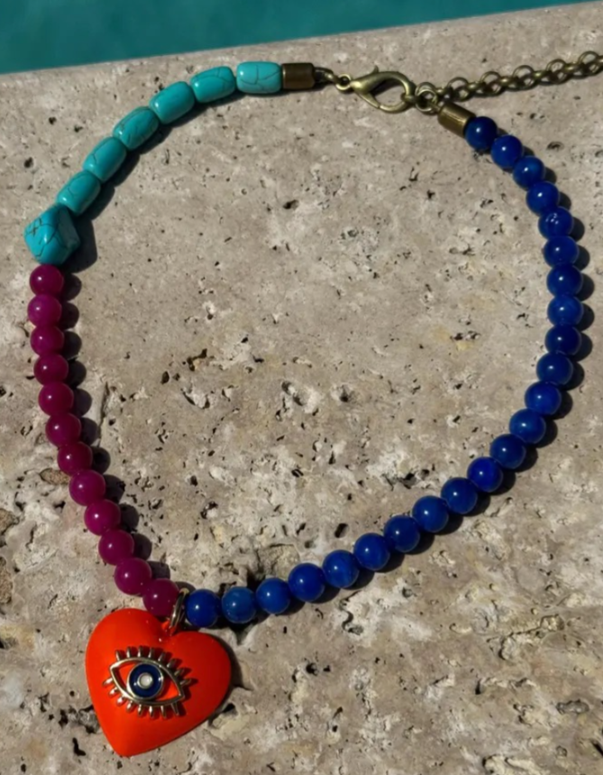Product Name:Evil Eye Gemstone Heart Pendant Necklace
