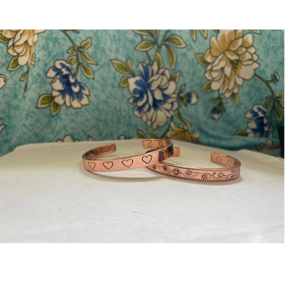 Heart Graved Design Unisex Copper Band Hand Bangle Copper Pure 100 % Original Copper Bangle for Man and Woman