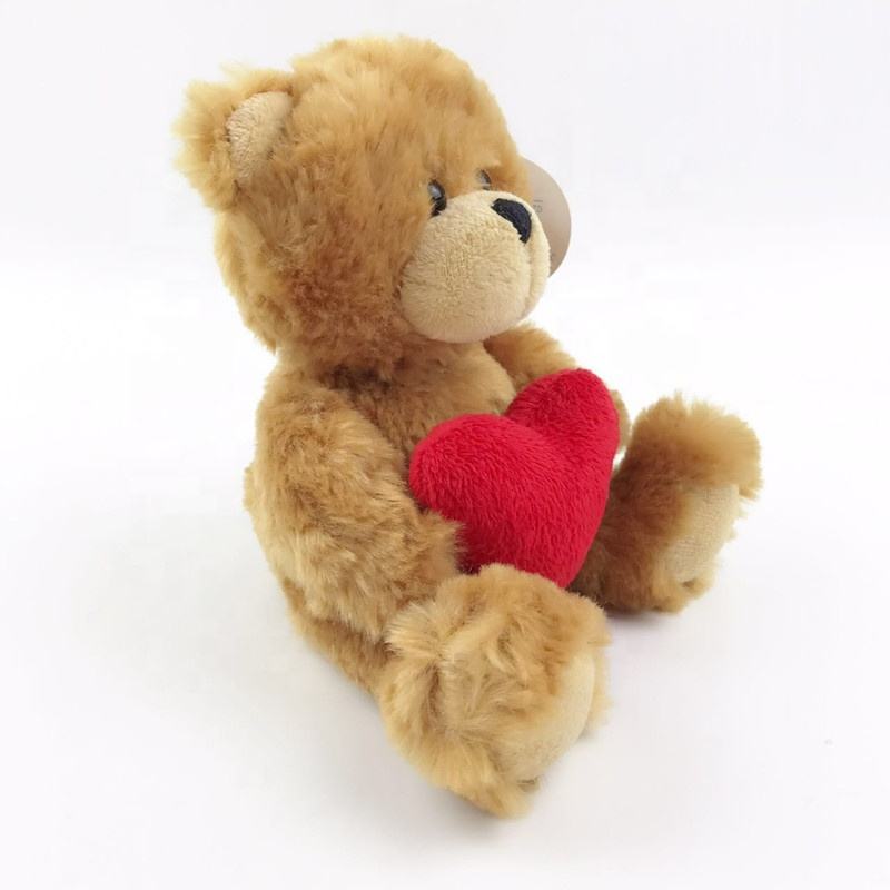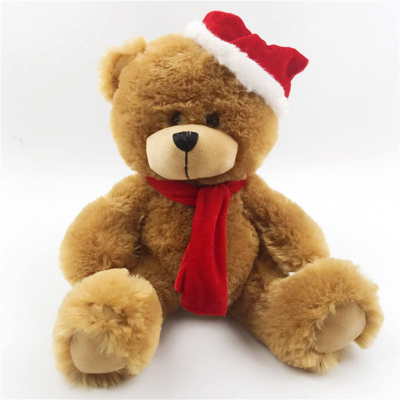 Heart Plush Stuffed 15cm Sitting Small Brown Teddy Bear Plush Toys with Wearing Christmas Red Hat Scarf