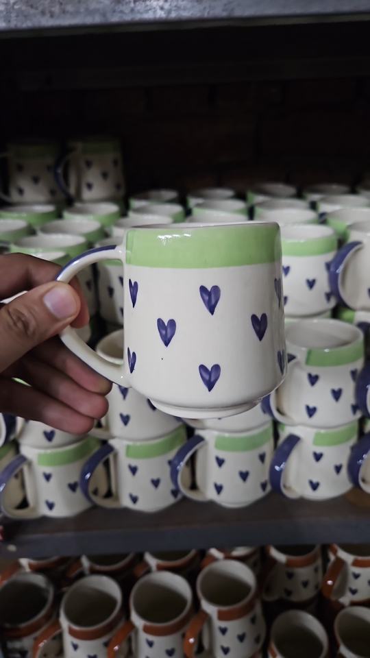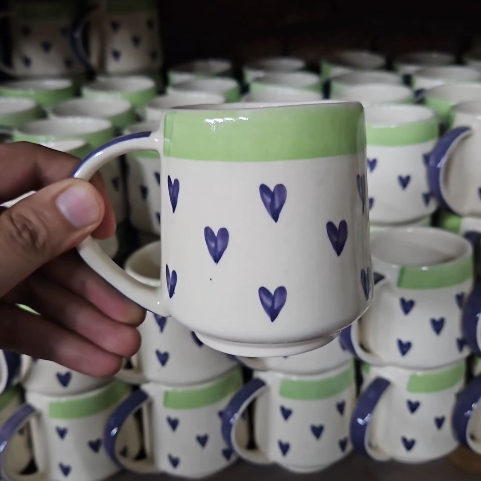 Heart Printed Ceramic Mug 300 ml Handmade Coffee Cup for Girls Women Microwave Safe Gift for Birthday Valentine Anniversary