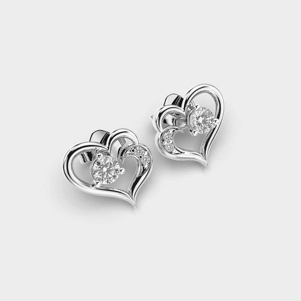 Factory Custom 18K Rose / Yellow / White Gold Heart Shape Diamond Stud Earrings Women Fine Jewelry Manufacturer