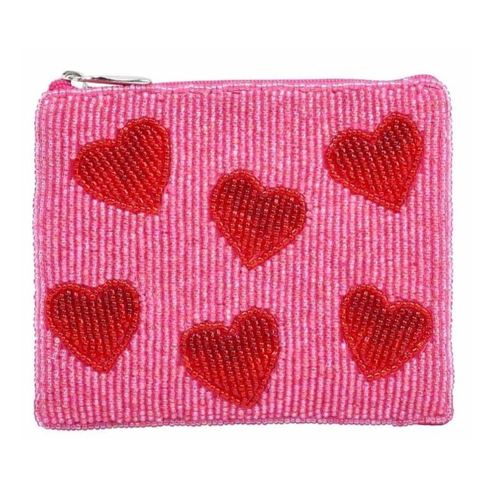 Heart Shape Beaded Cotton Fabric Coin Purse Coin Collecting Pouch Small Savings Pouch Zipper Closure Luxury Durable Handmade