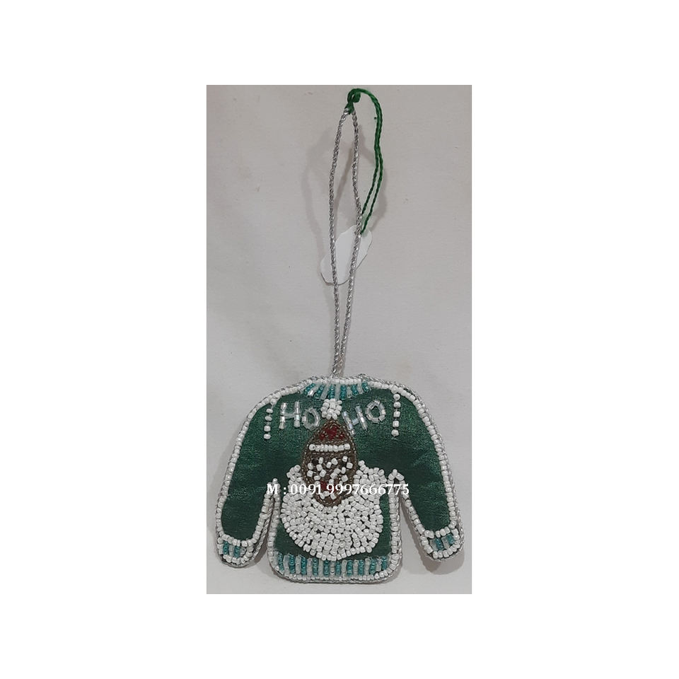 Heart Shape New Zari Embroidery Christmas Tree Hanging Ornaments Fabric Material With Beaded Work Used For Festivals Party Decor