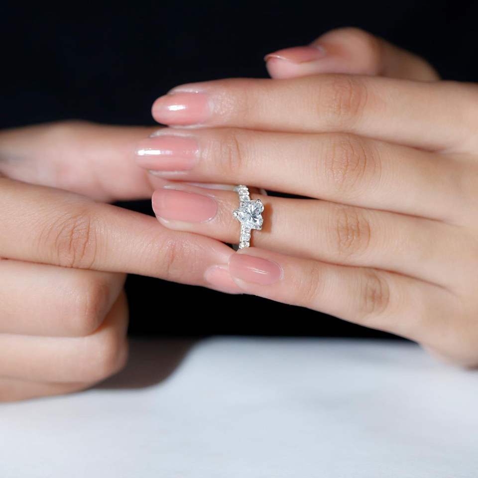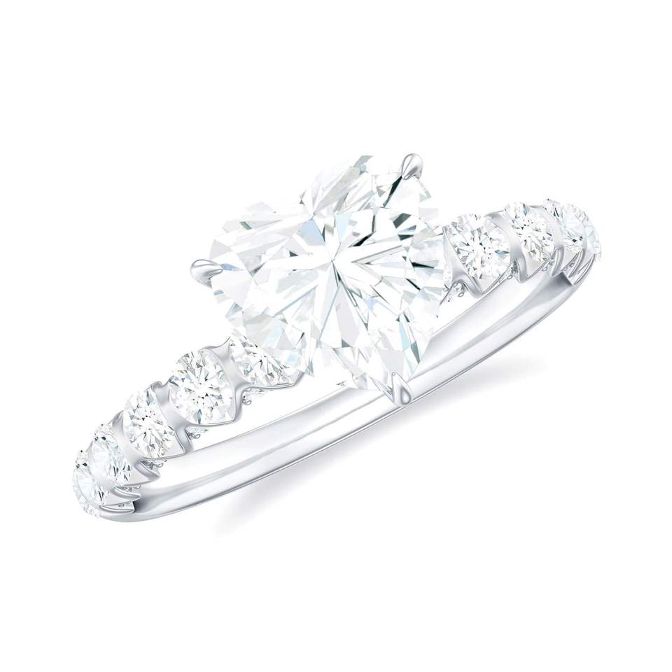 Heart Shape Moissanite Solitaire Engagement Ring with Side Stones, 925 Sterling Silver