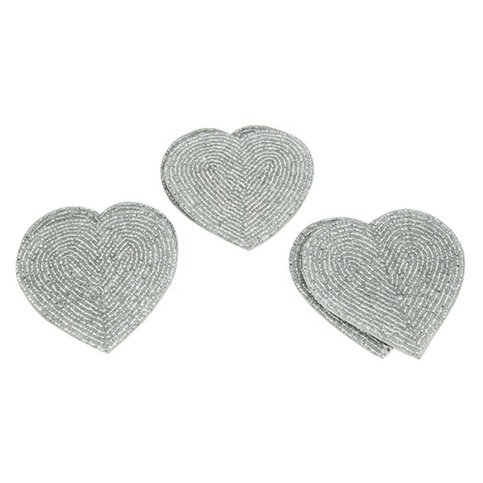 Heart Shape Red Beaded with Red Outline Handmade Coaster Set of Four Pieces Elegant and Durable