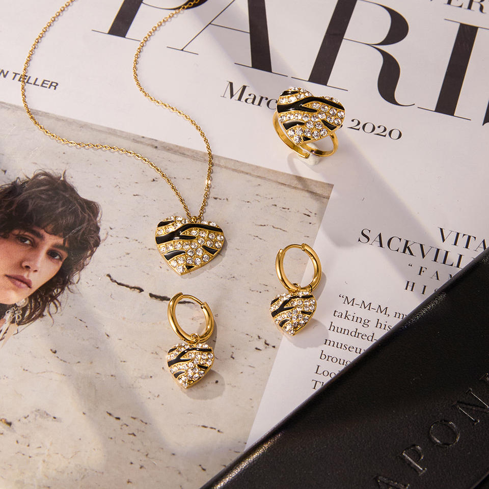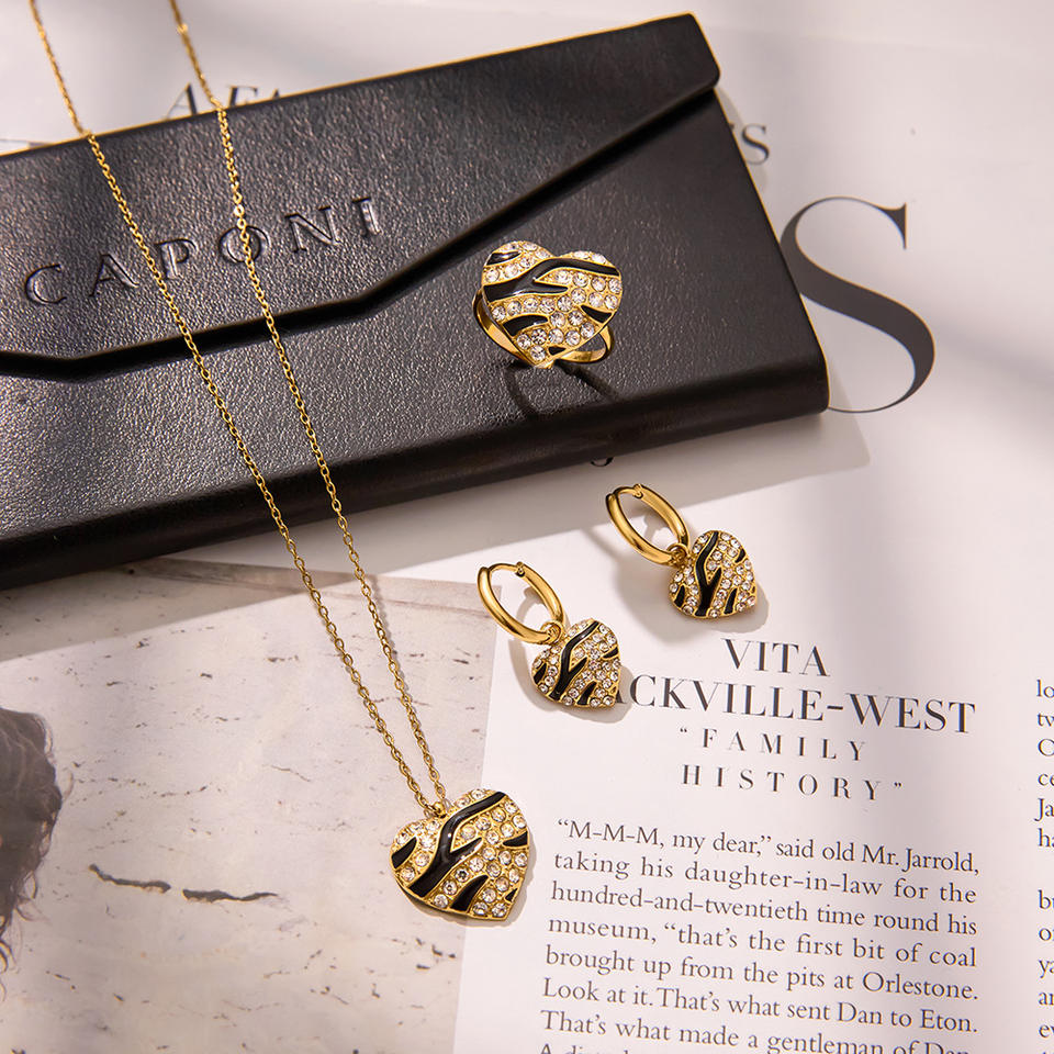 Heart Shape Rhinestone Jewelry Set For Women Stainless Steel Necklace Earrings Ring Party Fashion Accessory