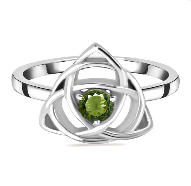 Heart-Shaped 925 Sterling Silver Ring with Moldavite Gemstone Trendy Prong Setting Fashionable Wedding or Engagement Gift