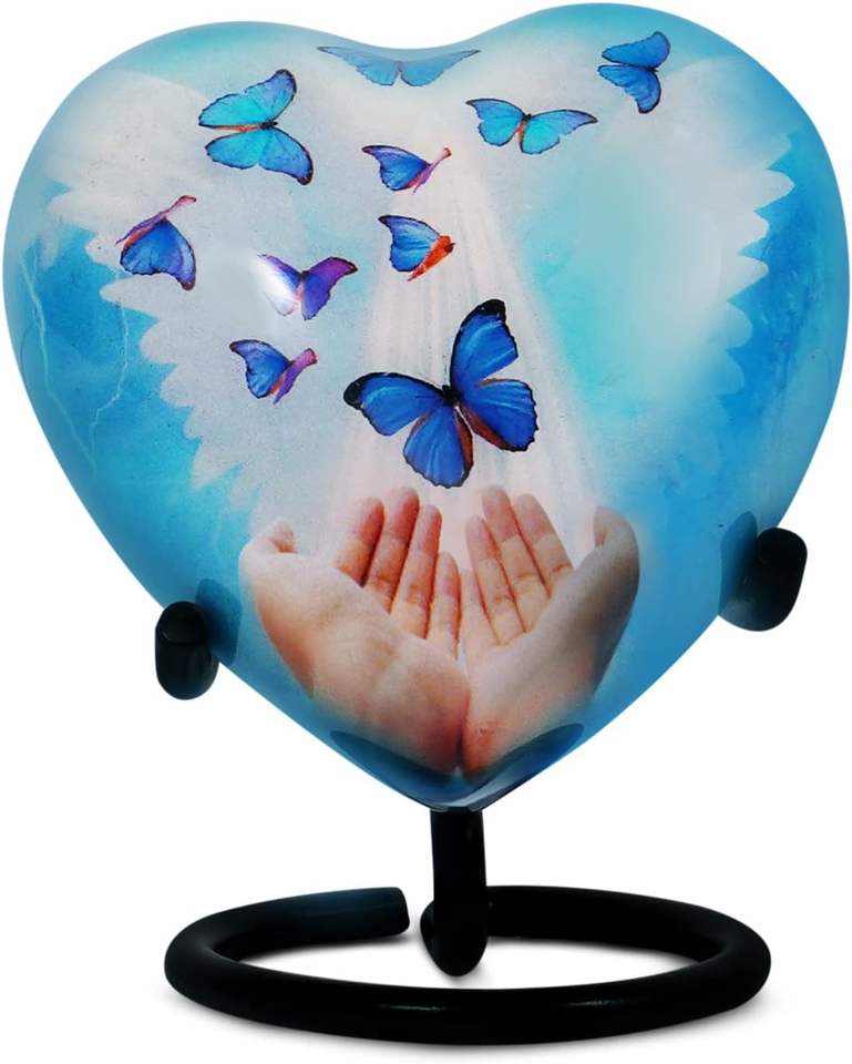 Heart Shaped Butterfly Urn for Human Ashes Memorial Cremation Urn for Human & Pets Butterfly Decorative Urns Durable Metal Stand