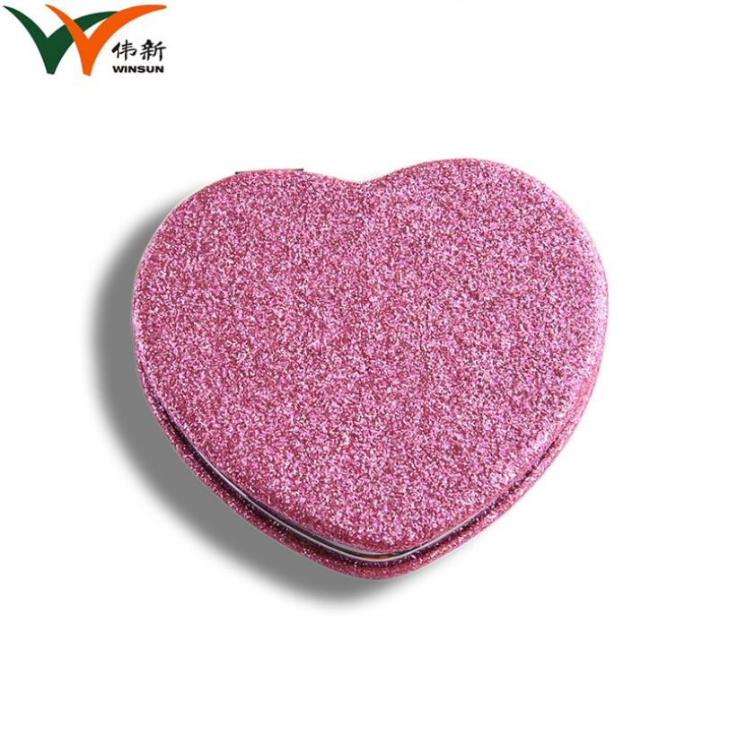 Heart Shaped Compact Mirror Custom Logo Pink Glitter PU Leather Heart Mirror for Valentine's Day