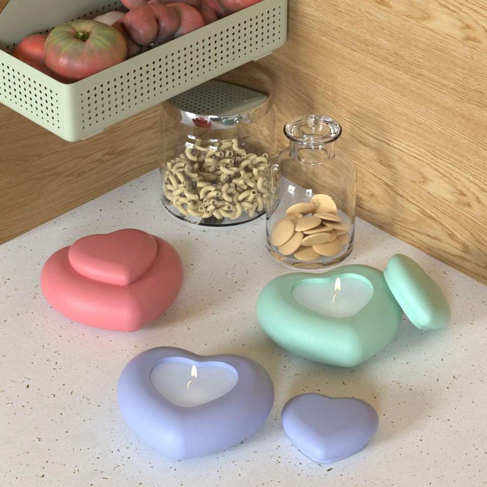 Heart Shaped Heart Storage Jar Box Aromatherapy Candle Cup Candle Holder Gypsum Epoxy Resin Candle Silicone Mold