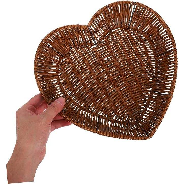 Heart Shaped Imitation Rattan Basket Elegant Serving Dish for Fruits Stackable Storage for Weddings Table Decorations
