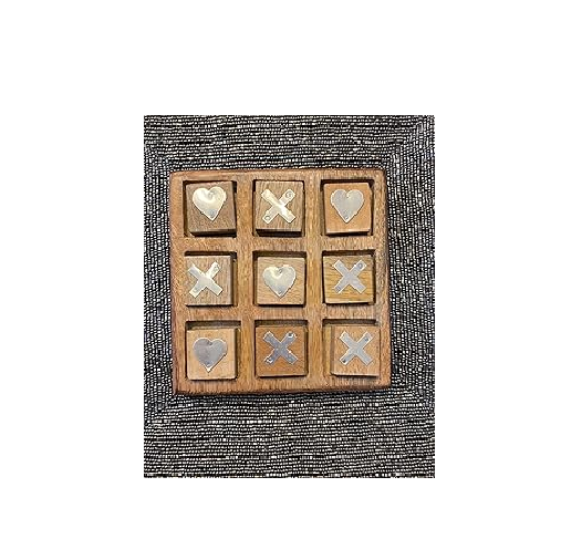 Heart-Shaped Mango Wood Tic Tac Toe Coffee Table Gold & Colorful Board Game for Children Best Piece with Gift Design