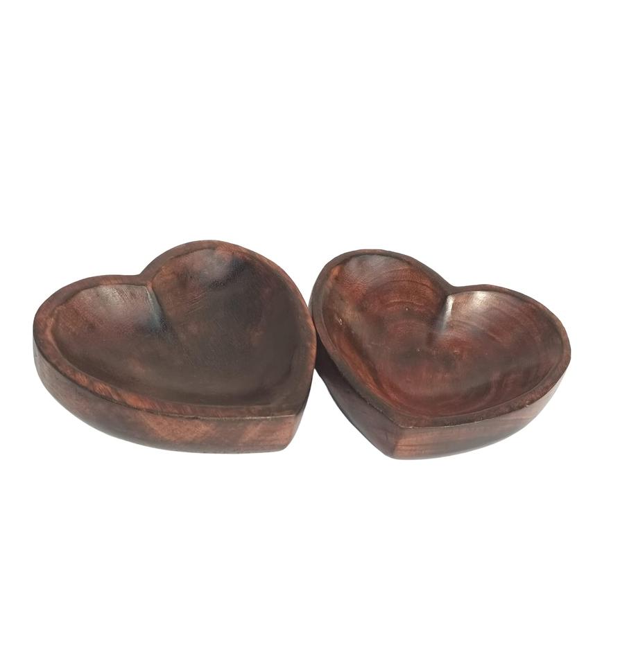 Heart Shaped Mango Wooden Salad Bowl Set, Fruit Bowl Set, Candy Cookies Bowl Set, Decorative Bowl Set (5.5"x5.5"x2") Set of 2