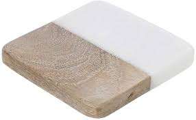 Classic Style Heart-Shaped Natural Polished Wood and Marble Coasters Free Walnut Iron with Handles From India