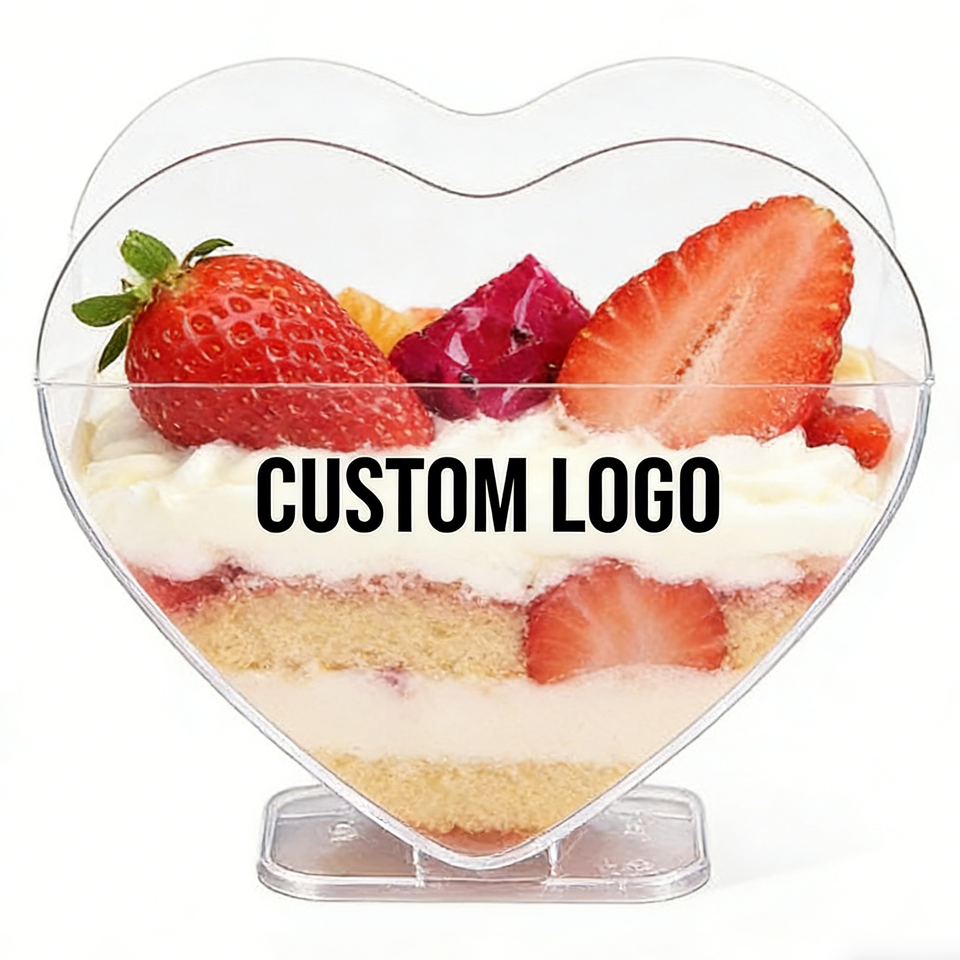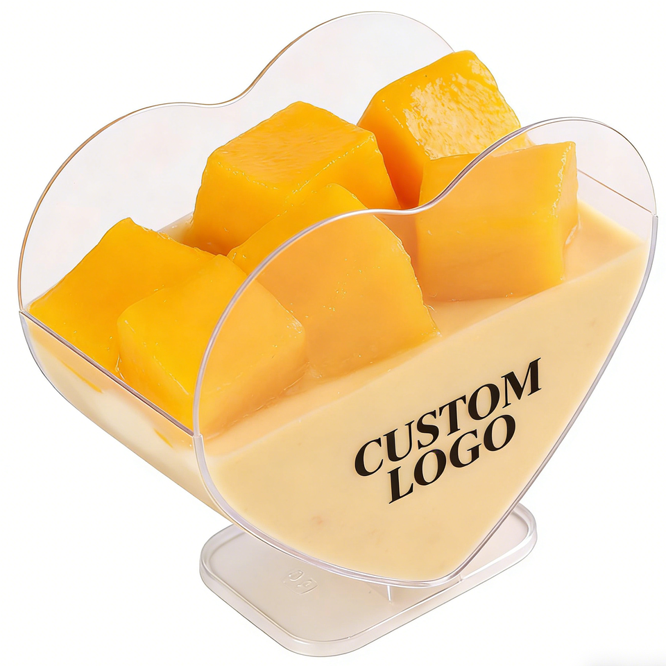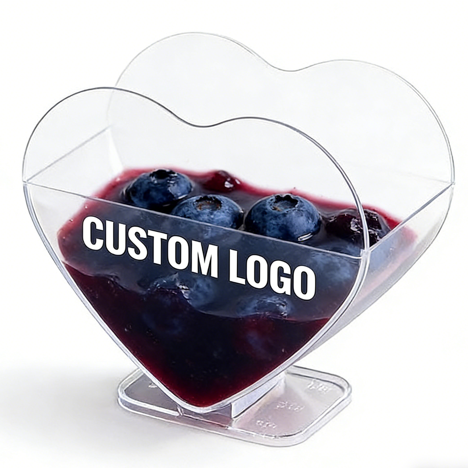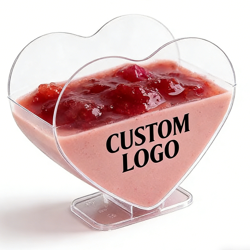 Heart-Shaped PP Plastic Cups 9oz 90mm Diameter Disposable Food Grade UV Printing Kitchen Use Sauce Cups
