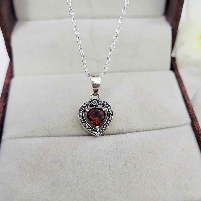 Heart Shaped Red Garnet Pendant Necklace Sterling Silver Minimalist Jewelry For Women Romantic Gift