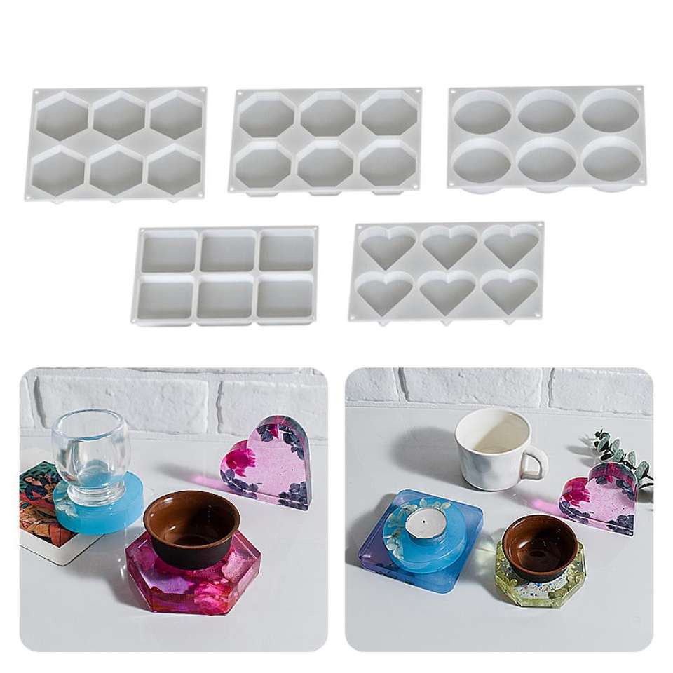 Heart Shaped Round And Square Octagon Thickened Geometric Coaster With Hanging Hole Resin Silicone Mold