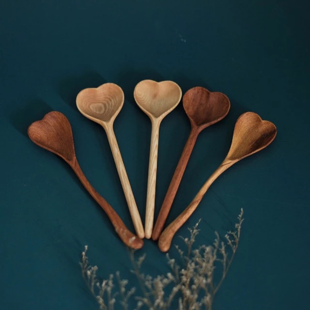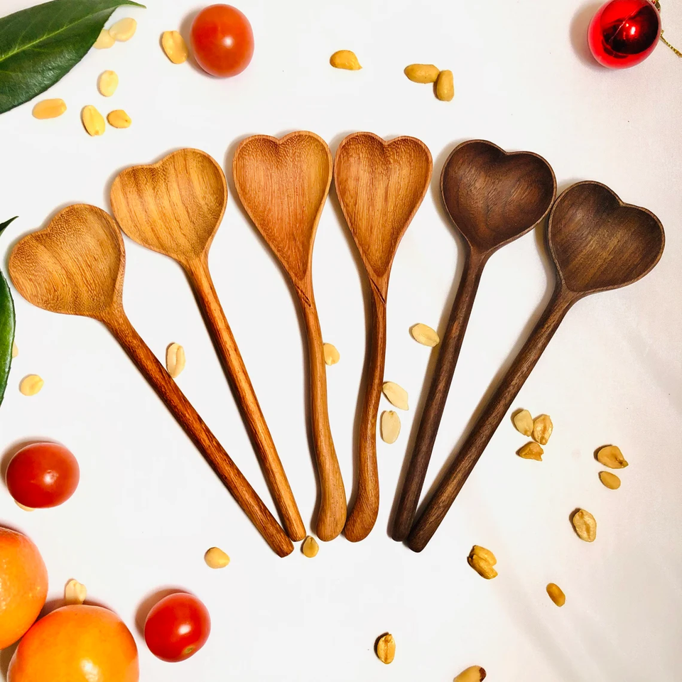 Heart-Shaped Wooden Spoon - Handmade Solid Wood Gift Idea for Loved Ones & Rustic Table Settings