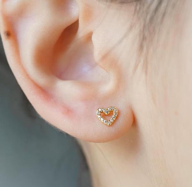 Heart Stud Earring|CZ Heart Stud Earrings|Sparkling Tiny Heart Studs|14k Sterling Silver|Gift for Mom|Pave CZ Heart Earring