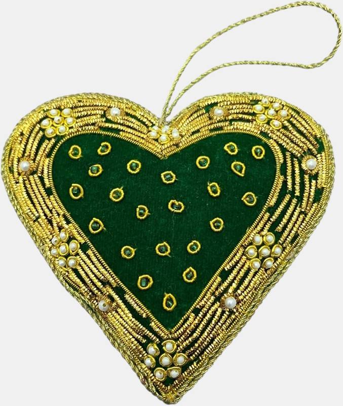 Heart Zari Hanging Decoration – Traditional Gold Zari Embroidery, Home Decor Ornament for Ramadan, Eid, Christmas & Weddings