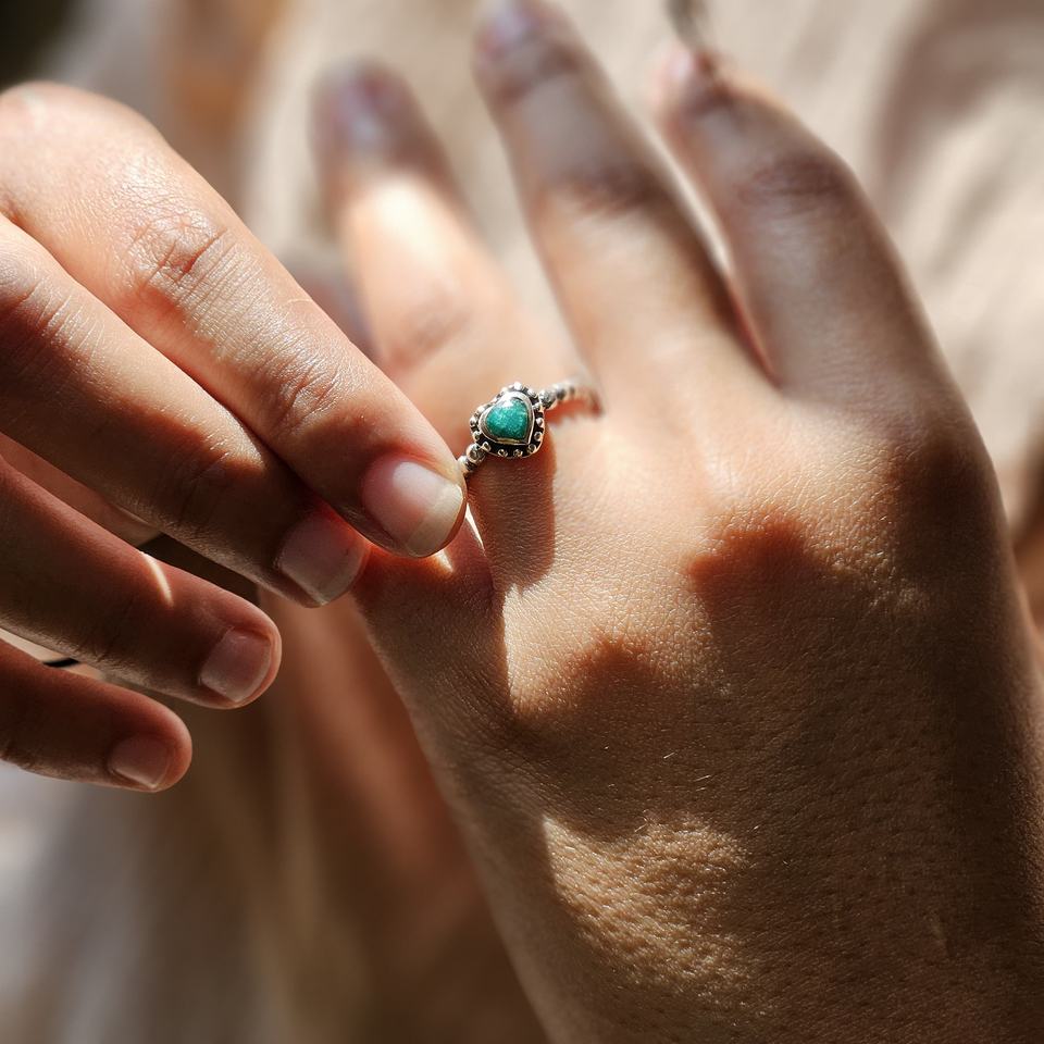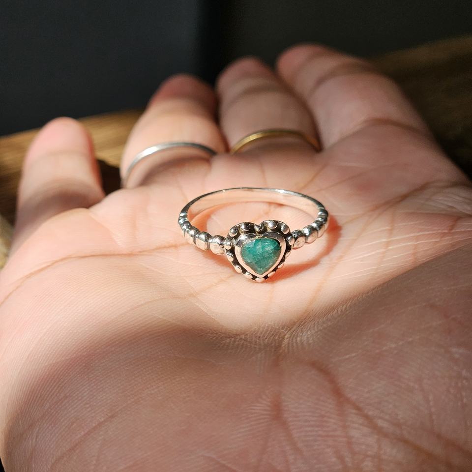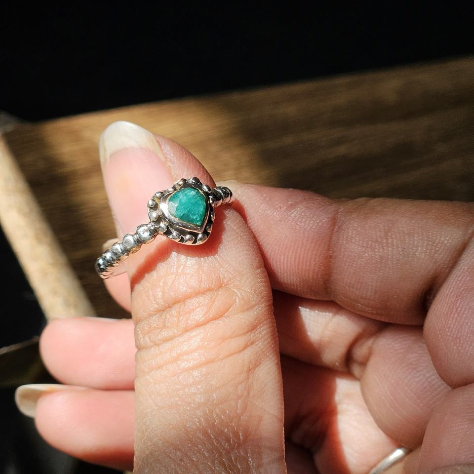 Sterling Silver Heart Emerald Gemstone Ring Bohemian Style Delicate Gift for Children-Wedding Anniversary Party