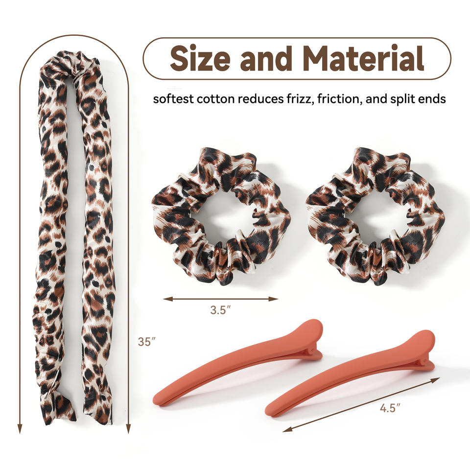 Heat-Free Hair Curling Set Leopard Print Scrunchies With Clips For Daily Use No Electricity Required