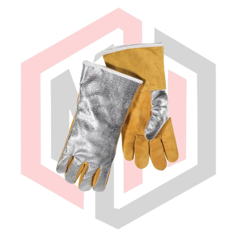Heat Resistant Anti-static Silicone-Free Gloves Split Leather Aluminized Back Anti-Slip Tear-Resistant Breathable Gloves