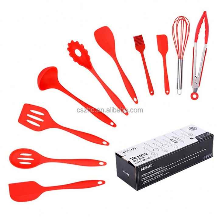 Heat Resistant BPA-Free 10pcs Cooking Tools Whisk Spatula Tongs Kitchen Tools Non-stick Silicone Cooking Utensil Set