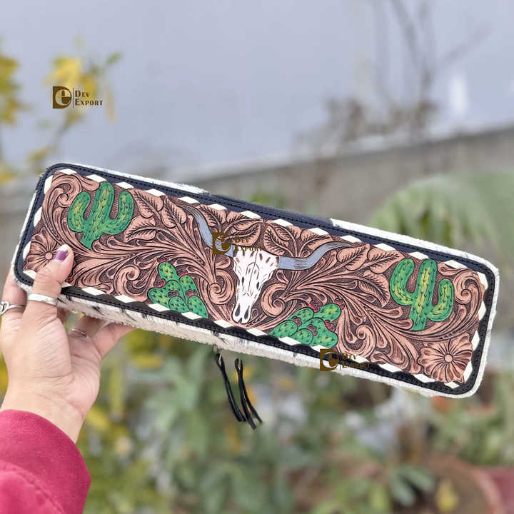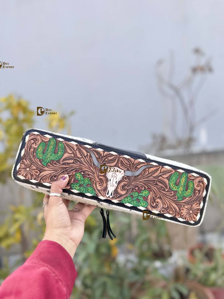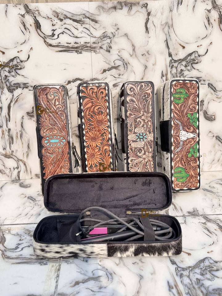 Heat Resistant Hair Straightener Case Hand Tooled Leather New Designer Hair On Hide Fur Perfect Organizer for Hair Tools