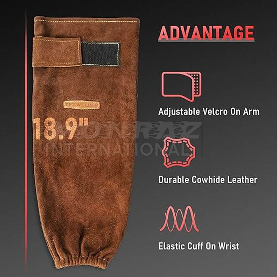 Heat Resistant Leather Welding Arm Sleeves Flame Retardant Protection Heavy Duty Cowhide Leather Welding Arm
