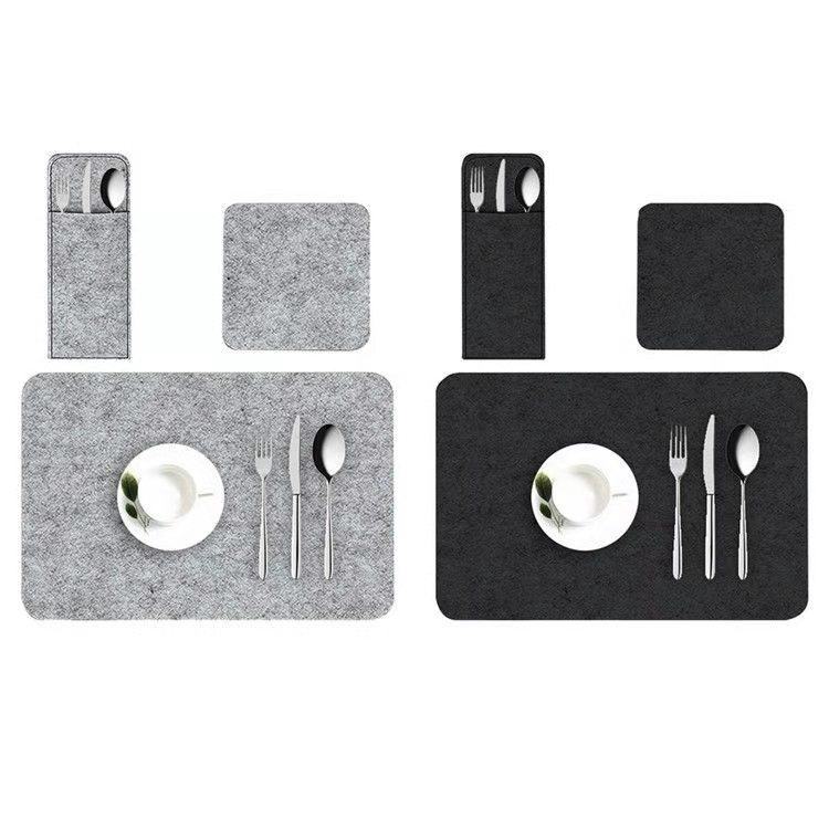 Heat Resistant Rectangle Black Felt Fabric Eco-Friendly Customized Size Placement Mat Table Pad Plate Placemat