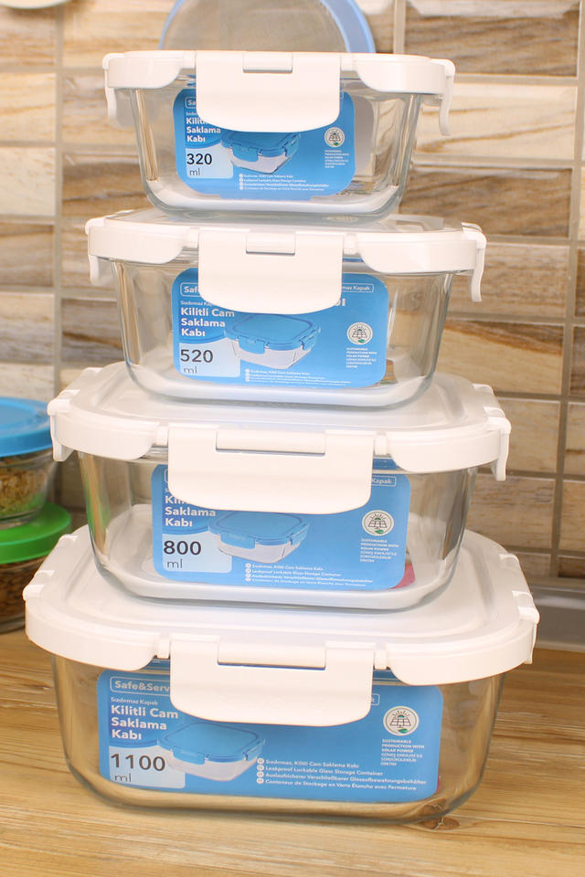 Heat-Resistant Square Leak-Proof 4-Piece Glass Storage Container Set with Plastic Lid