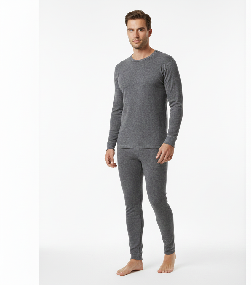 Heat Secure Grey Men Thermal Suit Soft Full Sleeve Breathable Warm Winter Clothing Apparel