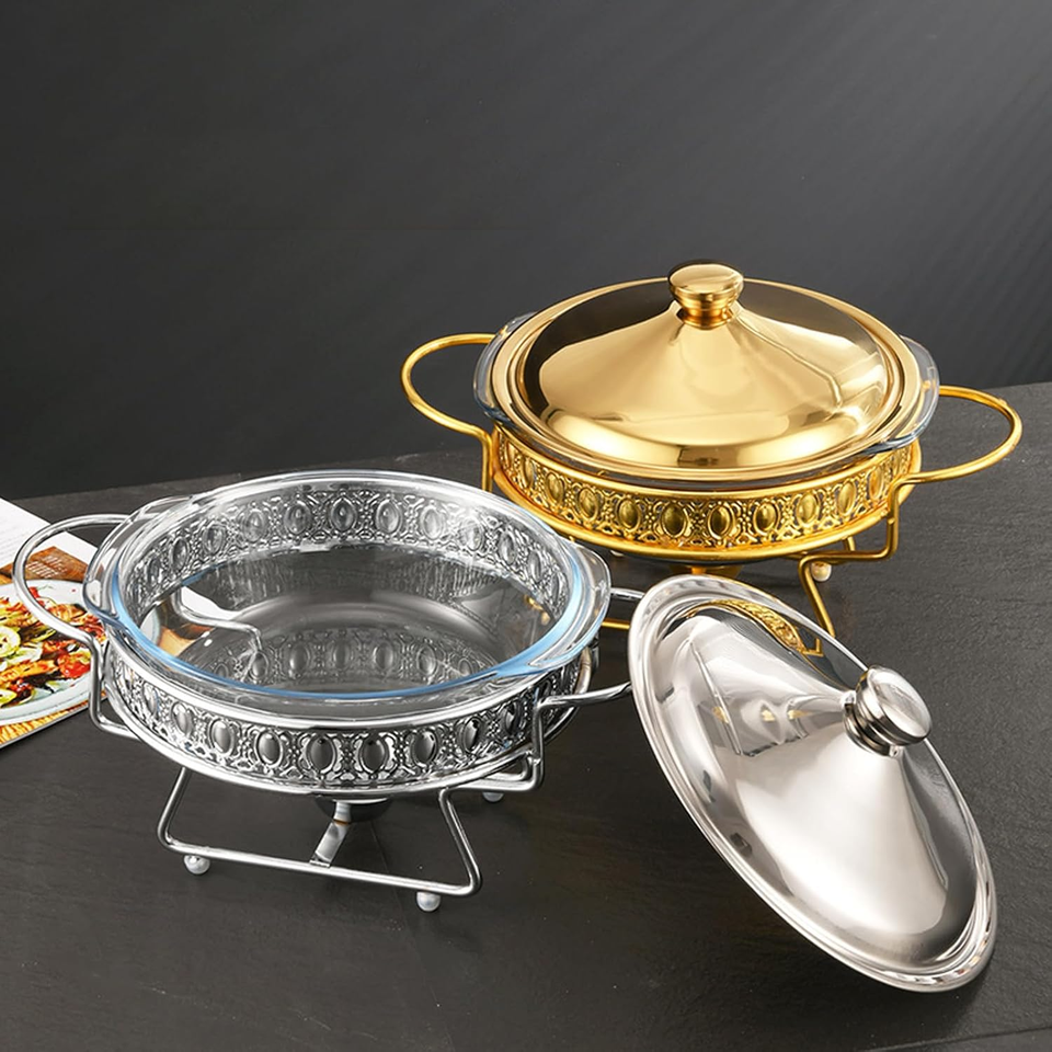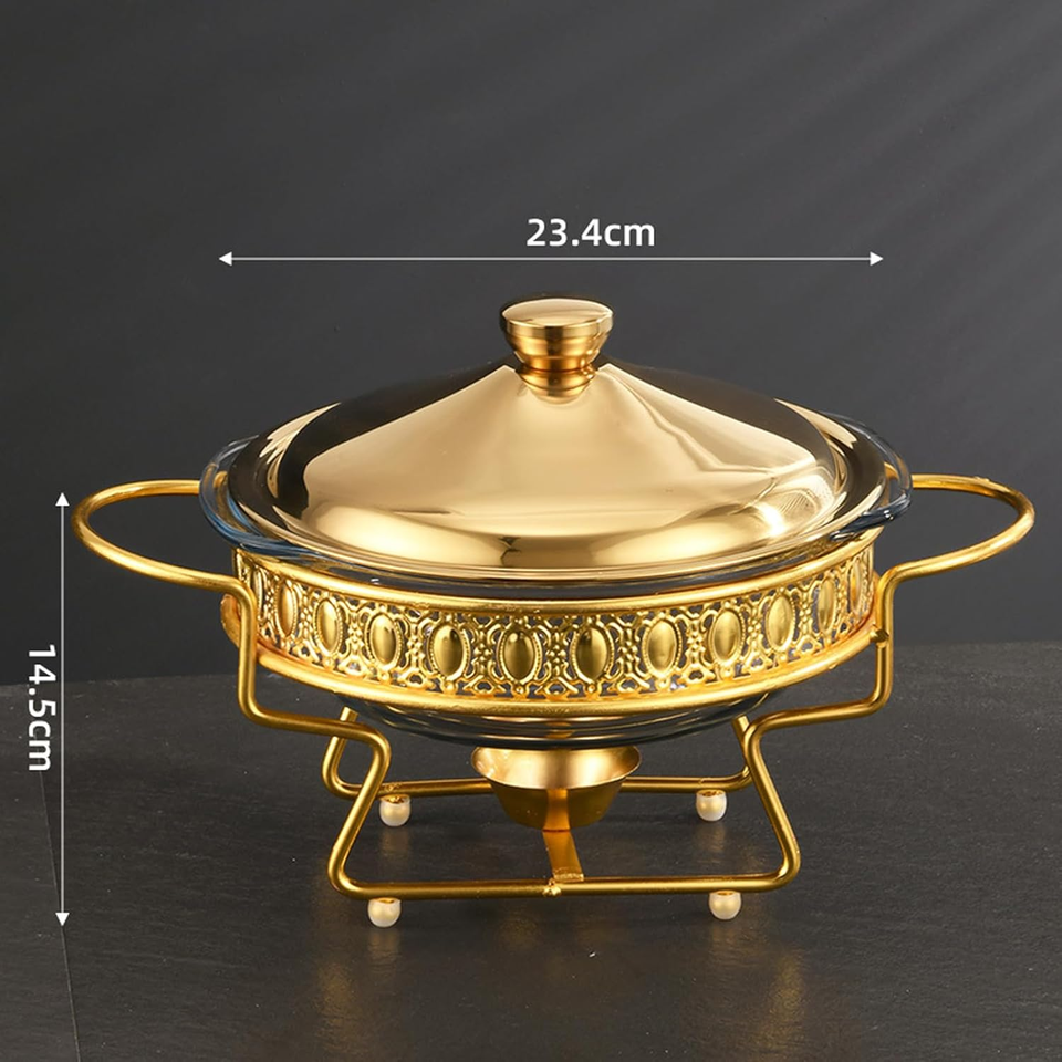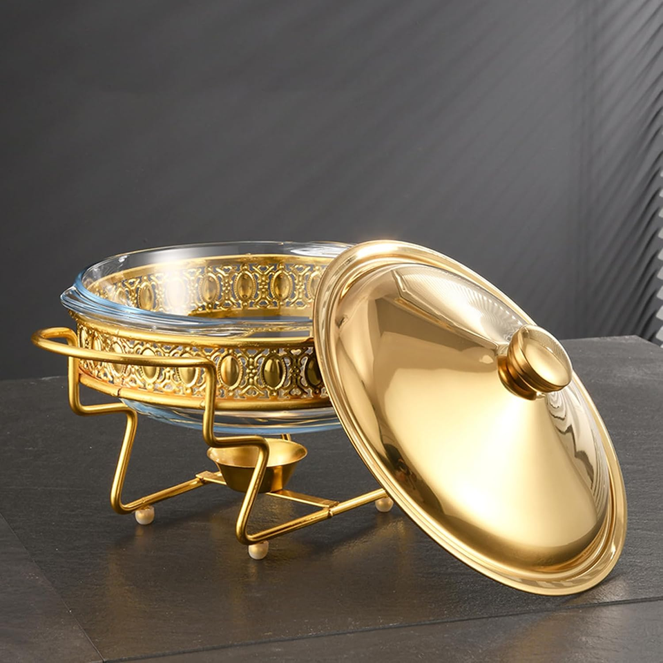Heat Resistant Stainless Steel Kitchen Buffet Stove 6L Circular Lid Alcohol Heated Golden Buffet Pot Constant Temperature