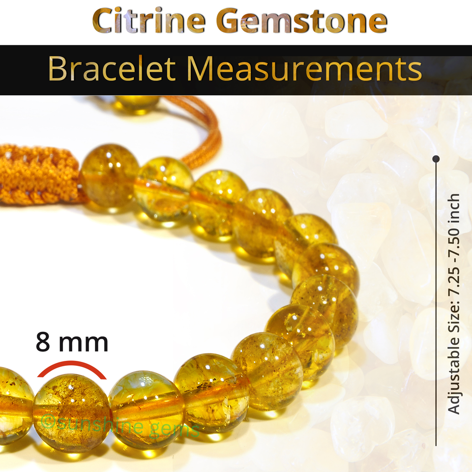 Heated Citrine Adjustable Crystal Bracelet Gemstone Bead Bracelet with Macrame String Healing Crystal Bracelet for Men Women