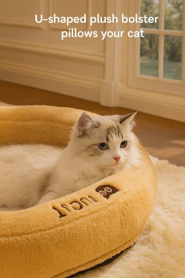 Heated Memory Foam Cat & Dog Bed with Soft Bunny Fur Removable Washable Cover Round Design-Luxury All Seasons Indoor Use