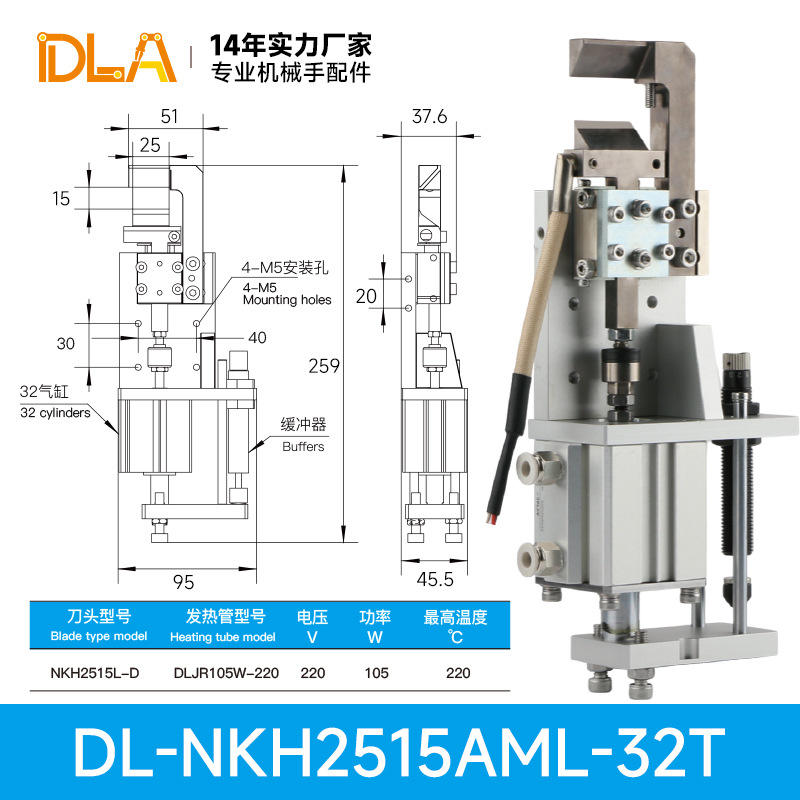 Heated Pneumatic Push Knife DL-NKH2515AML-32T Adjustable Industrial Plastic Shear with Temperature Range From 0-220 Celsius