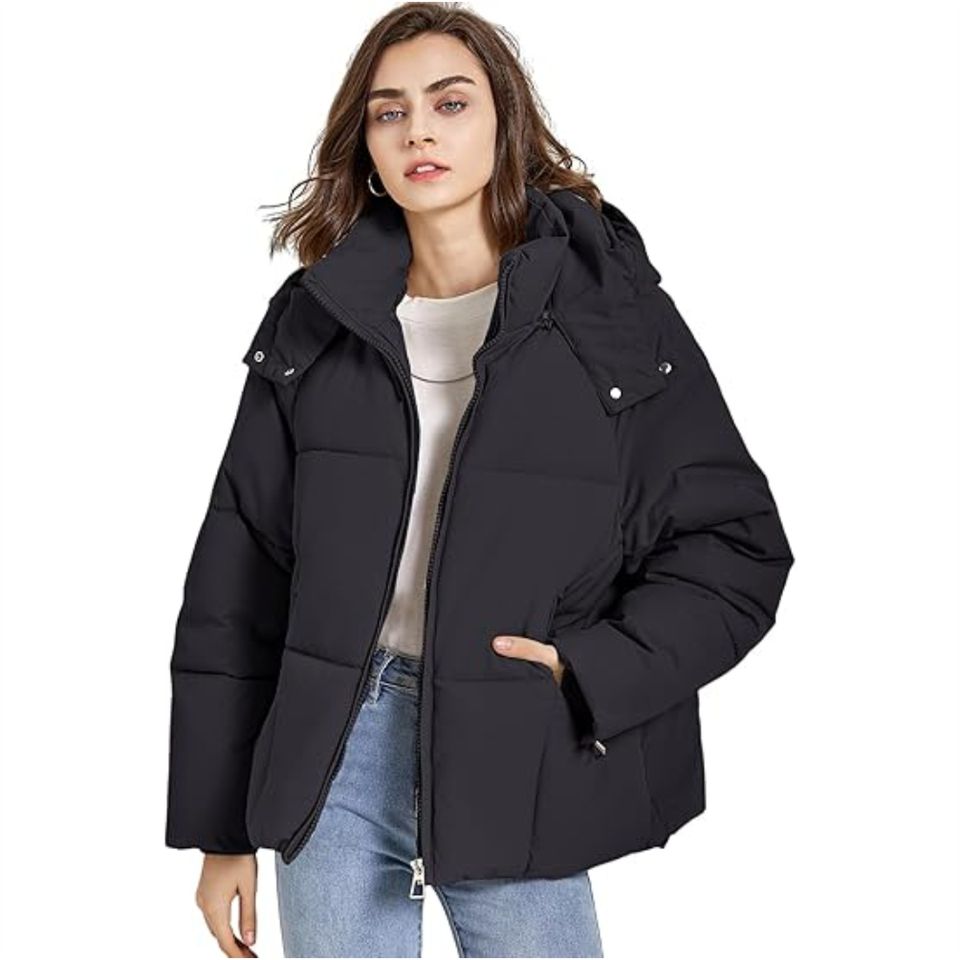Heated Women's Winter Warm Quilted Puffer Jacket with Long Sleeves Full Zip Solid Pattern Bubble Coat Featuring Knitted Pocket