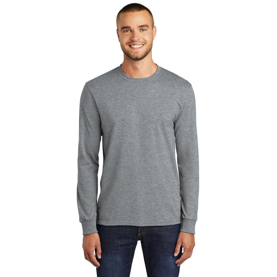 Heater Gray Men's Regular-Fit Long-Sleeve T Shirt Men's Tie Dye Top Polyester Pure Color Tshirts Men's