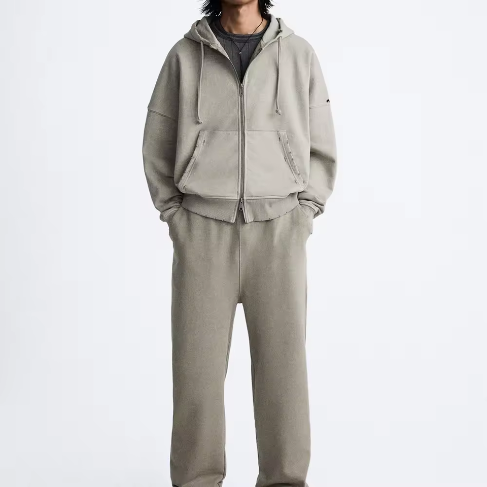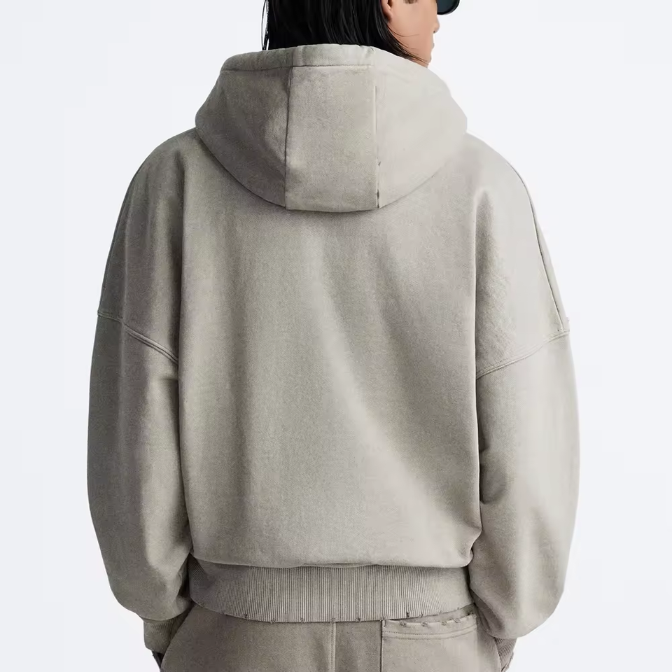 Heater grey heavyweight Ripped hoodie men 400 500 600gsm french terry hoodie distressed zip up hoodies