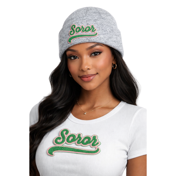 Heather Grey 08 Soror Polo Shirt Greek Sorority Womens Pink & Green College Sisterhood Stylish Casual Polo Apparel
