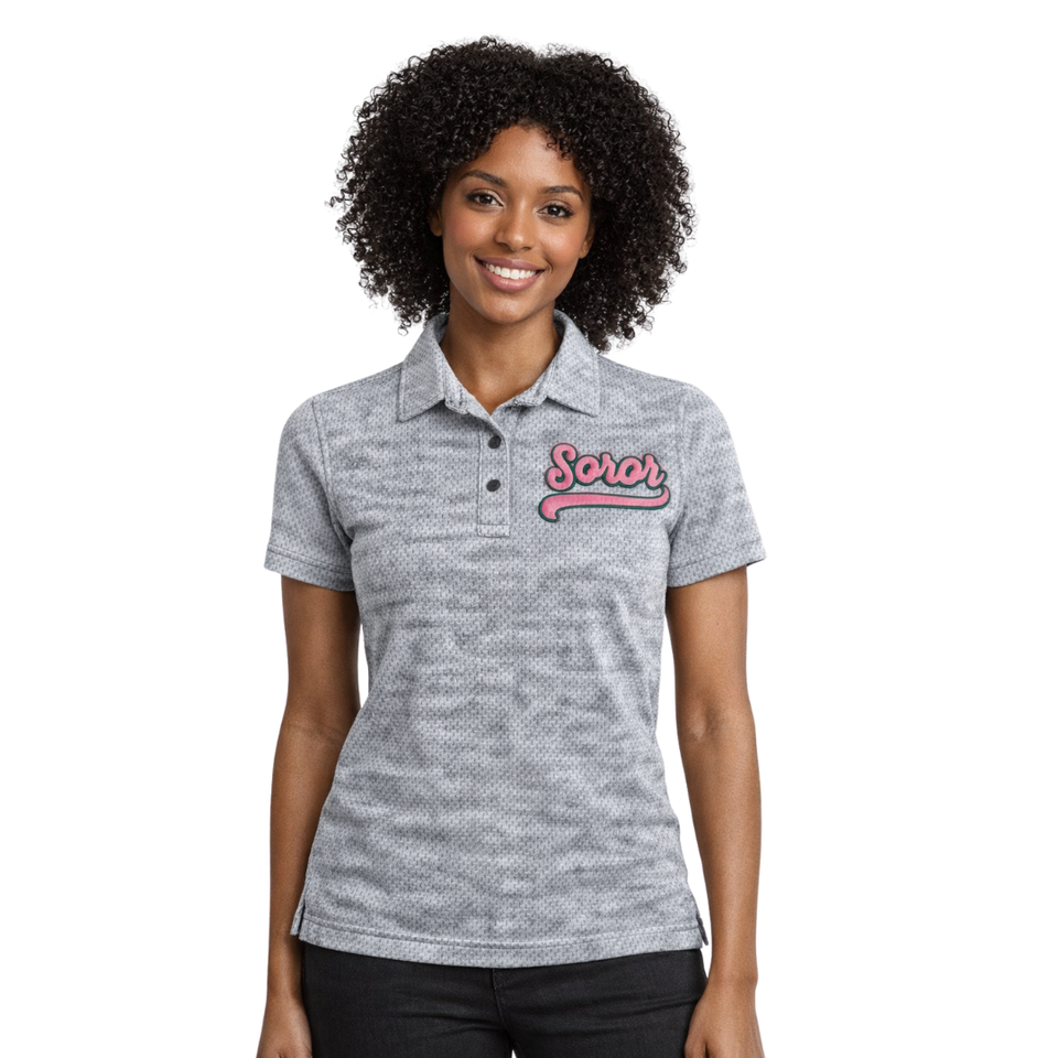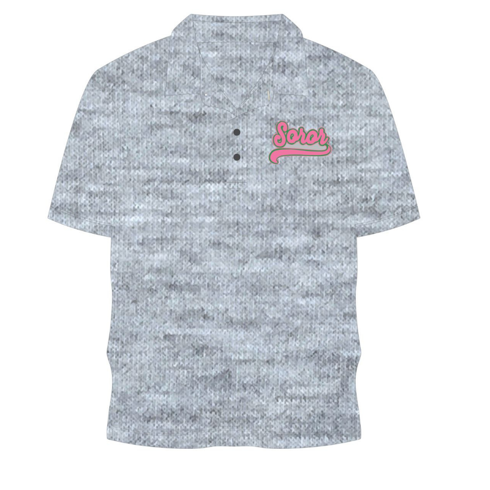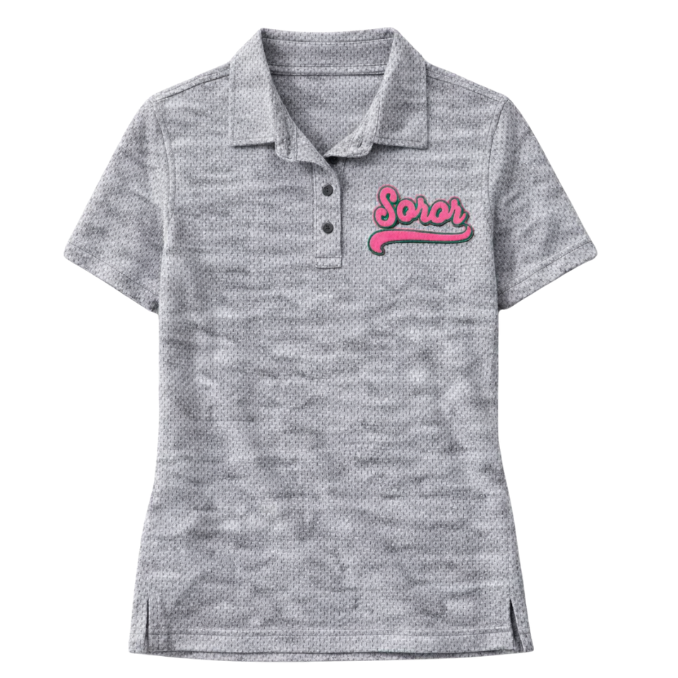 Heather Grey Soror Polo Shirt Greek Sorority Womens Pink & Green College Sisterhood Stylish Casual Polo Apparel