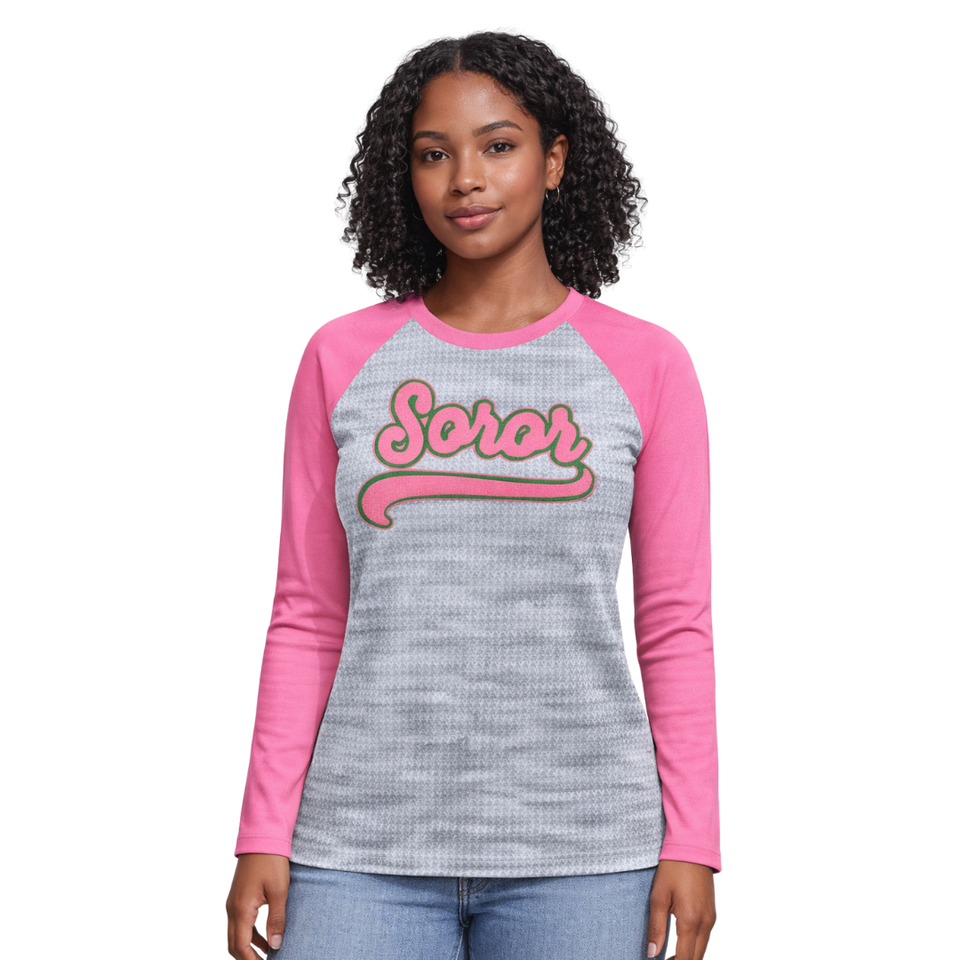 Heather Grey Soror Raglan Short Sleeve T-Shirt Greek Sorority Women's Pink Green Tee College Sisterhood Stylish Summer Diamonds