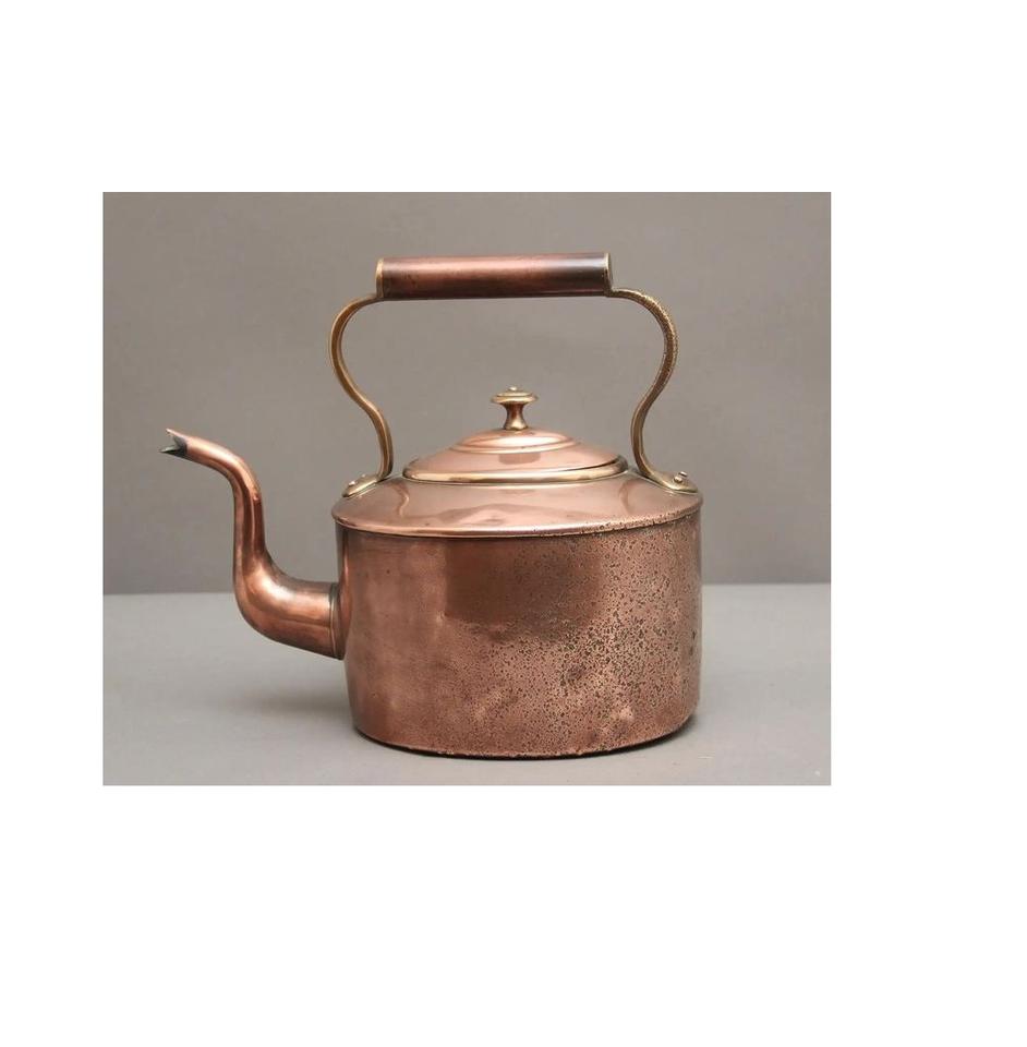 Heatproof copper kettle with brass edge and sturdy handle suitable for vintage kitchens and functional decor