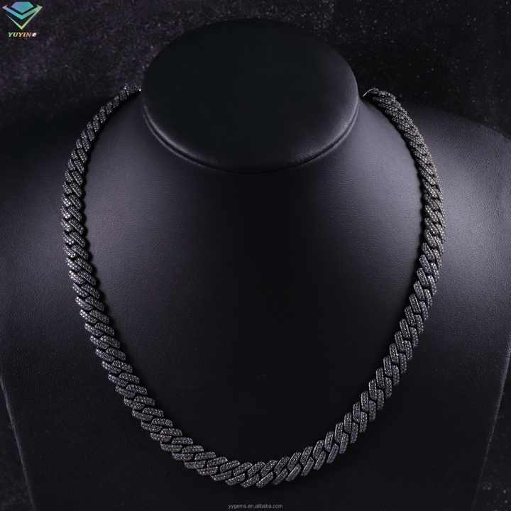 Heavy 10mm Moissanite Cuban Ready Stock Custom Hip Hop Jewelry Diamond Cuban Link Chain Black Moissanite S925 Necklace