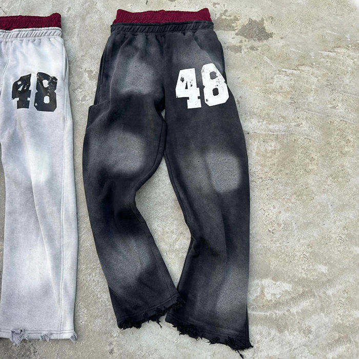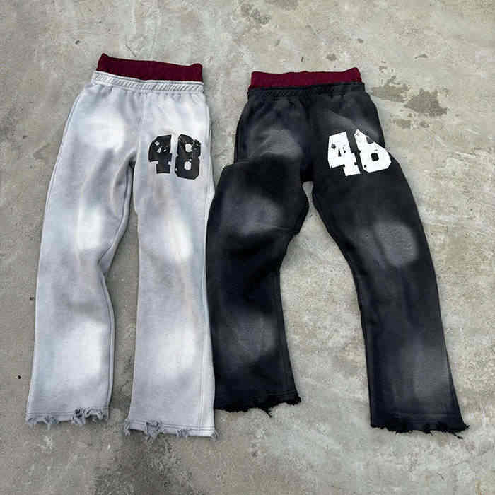 Heavy Baggy Heavyweight Acid Wash Vintage Flare Sweat Stacked Pants Men Custom Double Waist Cargo Streetwear Loose Sweatpants